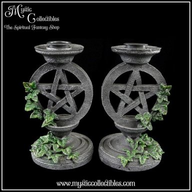 Prachtige kaarshouders Pair of Aged Ivy Pentagram Candlesticks Gothic Candle Holders geproduceerd door Nemesis Now.