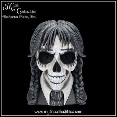 Prachtige schedel Dark Glare Gothic School Girl Skull geproduceerd door Nemesis Now.